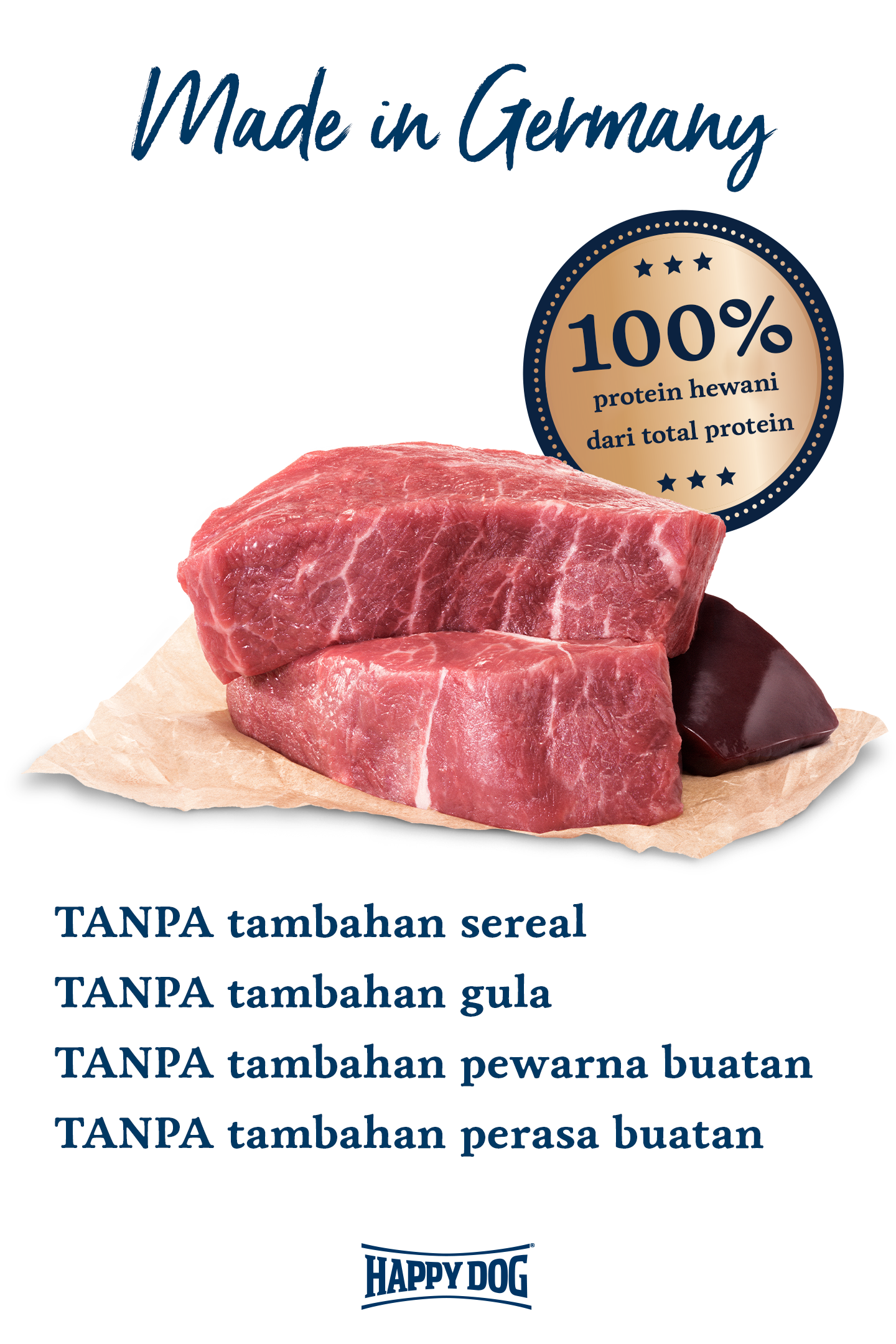 Makanan murni berbahan dasar daging ini sangat ideal sebagai makanan lengkap sendiri atau sebagai makanan yang disiapkan di rumah. Ini juga sempurna untuk dipadukan dengan sereal serpih Happy Dog FlockenMixer. Serpihan sereal menyediakan serat makanan penting untuk pola dan asupan makanan sehat. Sayuran mendukung pencernaan, sedangkan karbohidrat menyuplai energi.