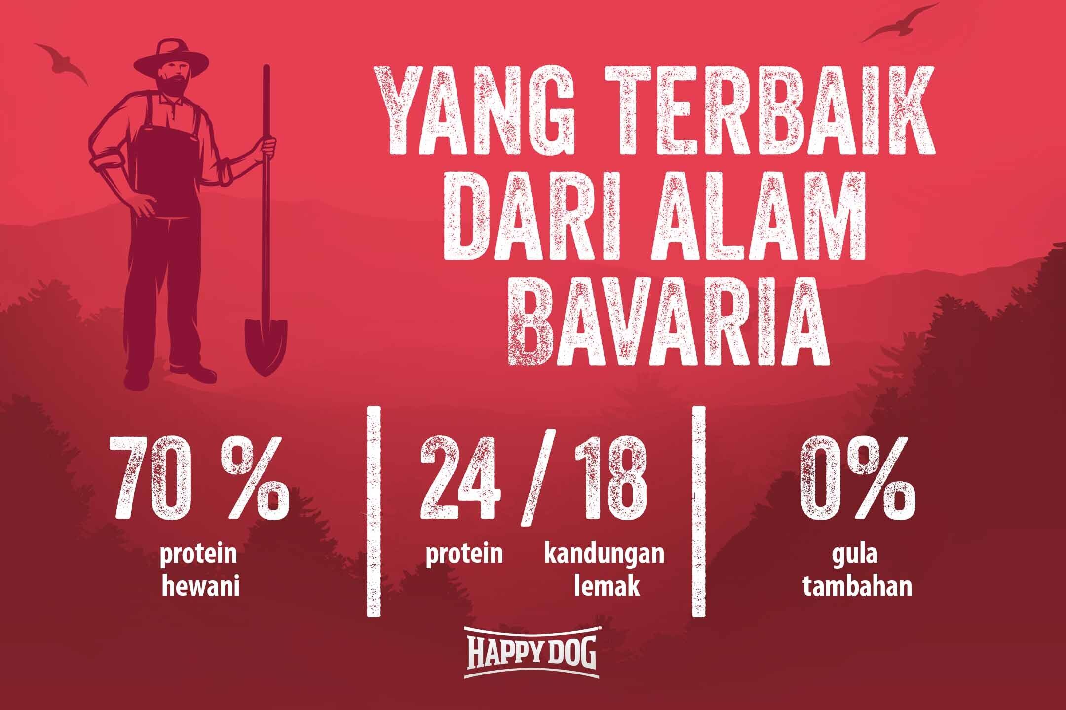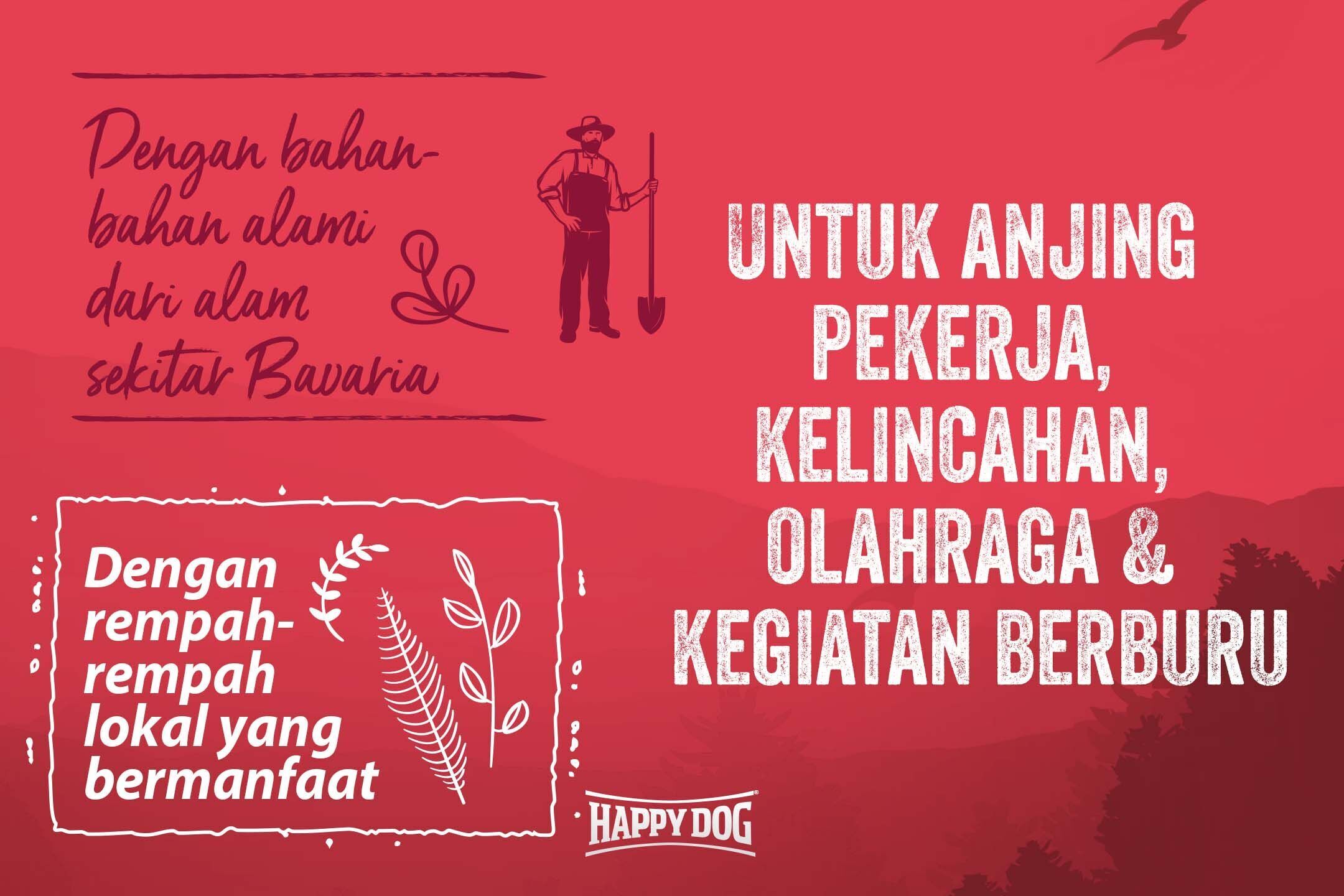 Makanan alami seimbang dengan bahan-bahan lokal untuk anjing aktif