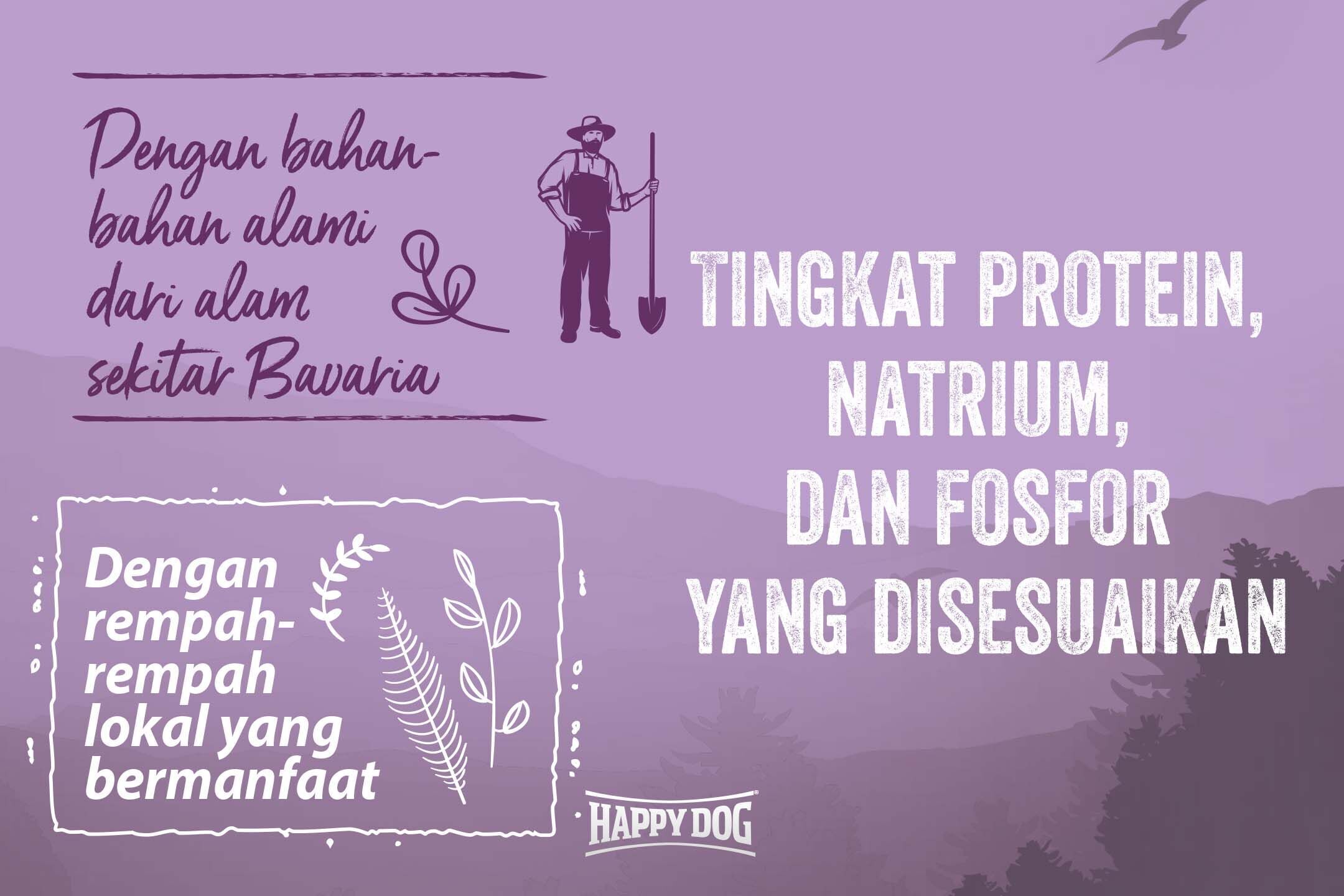 Untuk alasan ini, ketika kami mengembangkan Happy Dog NaturCroq Senior kami, kami memilih bahan-bahan berkualitas tinggi dan mudah dicerna yang lembut di usus dan memiliki kandungan protein sedang. Selain itu, resep ini, dengan bahan-bahan yang sebagian besar bersumber dari pedesaan seperti unggas dan gandum utuh, memiliki kadar natrium dan fosfor yang lebih rendah dan oleh karena itu merawat organ dalam anjing. Tumbuhan lokal dari Jerman yang berharga melengkapi resep yang lezat. Makanan kering memberi anjing tua semua nutrisi penting yang mereka butuhkan untuk vitalitas dan kebahagiaan di tahap ketiga kehidupan.