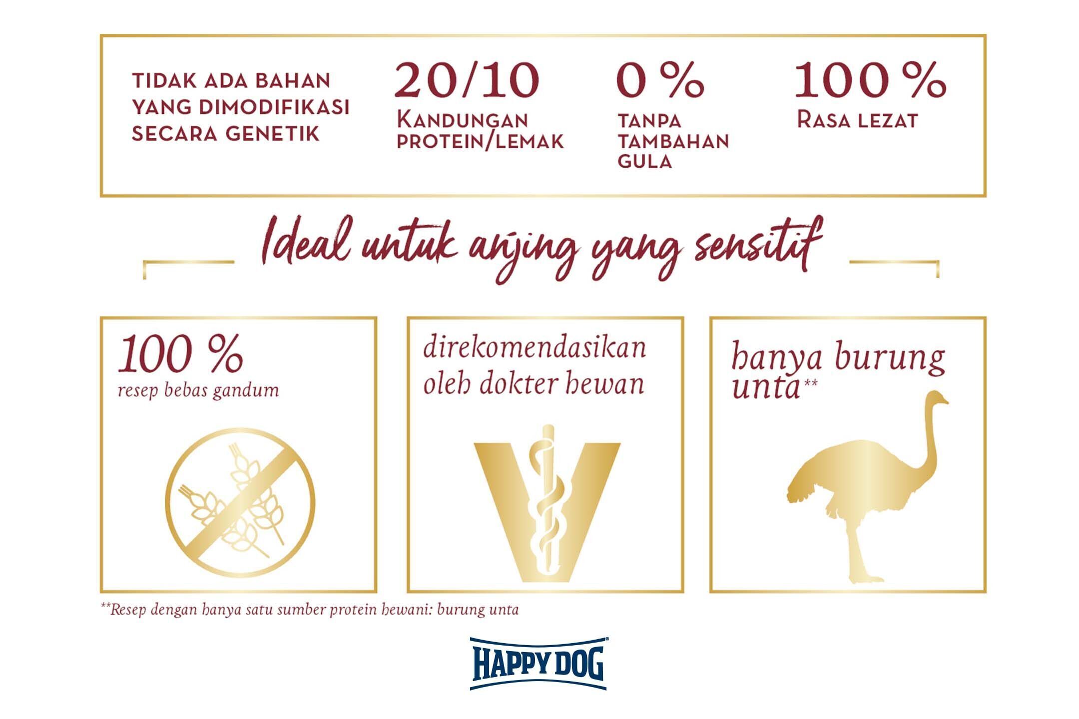 Bebas gandum dengan daging burung unta untuk anjing pencinta makanan lezat yang sensitif terhadap makanan