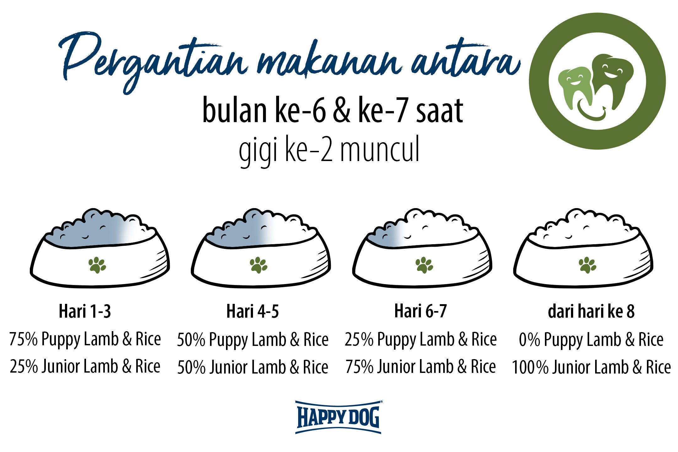 Harap diperhatikan: Ketika anjing mendekati berat akhir, kebutuhan energi dan jumlah makanan harus disesuaikan sesuai dengan panduan pemberian makan.