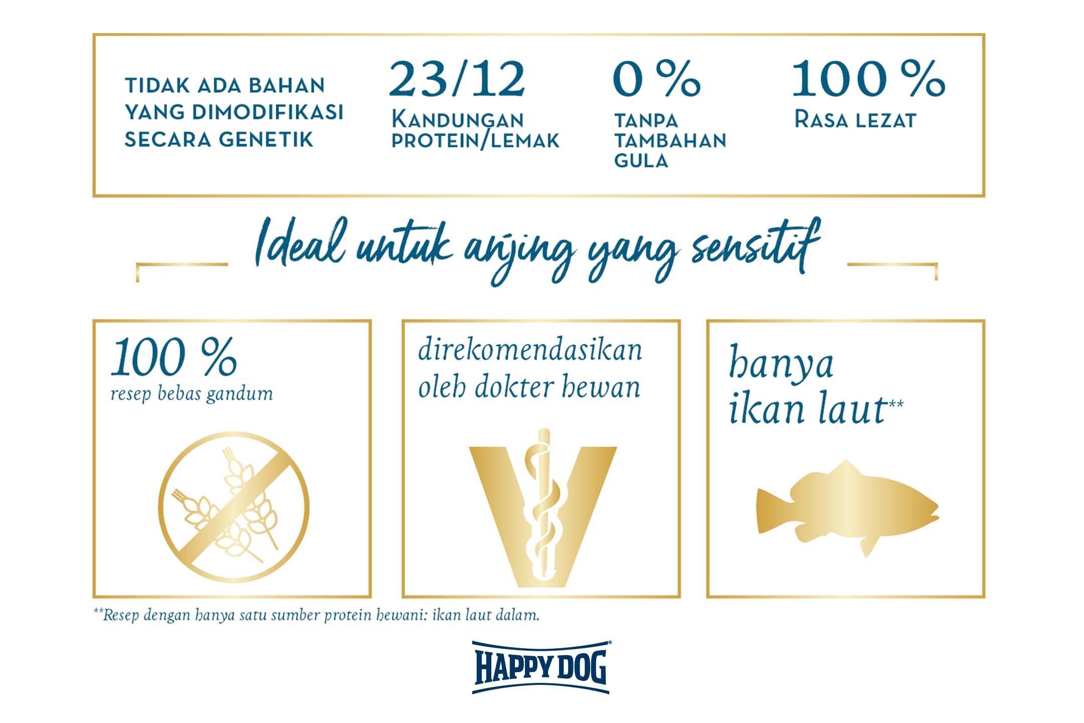 Apakah Anda ingin memanjakan anjing Anda dengan makanan yang sangat spesial? Atau apakah Anda memiliki anjing yang sensitif terhadap makanan di rumah yang juga memiliki masalah kulit dan bulu? Protein sumber tunggal yang dapat dicerna dari ikan laut dan kentang bebas gluten menjadikan Happy Dog Karibik (Caribbean) pengalaman rasa yang nyata untuk anjing, termasuk anjing yang sensitif. Kentang tidak mengandung gluten dan karenanya direkomendasikan untuk hewan yang memiliki intoleransi terhadap gandum. Sebagai sumber energi pilihan dan unik, ikan laut dapat ditoleransi dengan sangat baik, dan selain itu kaya akan asam lemak Omega-3 dan Omega-6 yang berharga, yang penting untuk kesehatan kulit dan bulu yang berkilau. Hal ini membuat Supreme Sensible Karibik (Caribbean) menjadi makanan kering yang ideal dan seimbang untuk anjing yang alergi dan sensitif terhadap makanan.