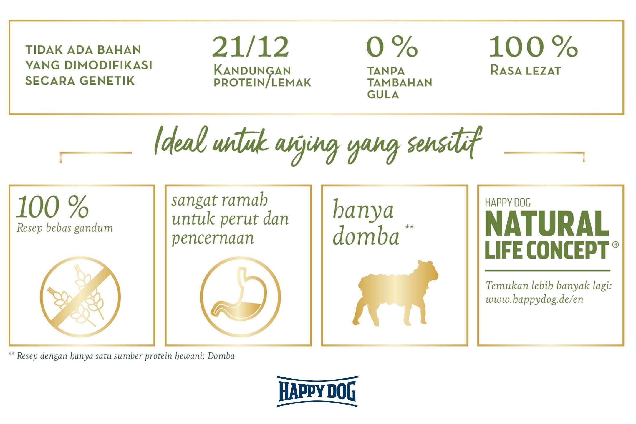 Makanan Lengkap Super Premium yang sangat lezat, Happy Dog New Zealand sangat ideal untuk anjing dewasa pencinta makanan lezat yang pemilih yang memiliki berat hingga 11kg yang membutuhkan variasi atau yang memiliki pencernaan yang sensitif.